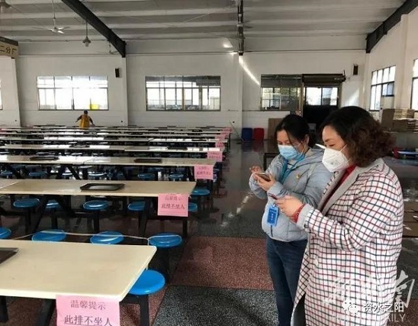长春经开区驻企联络员正在企业食堂指导分坐用餐