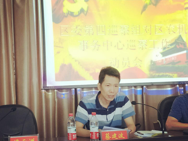 蔡建波指出,区农机事务中心党组和各级党员领导干部要以这次巡察为契机,进一步增强“四个意识”,把坚决维护以习近平同志为核心的党中央权威和集中统一领导作为最高政治原则和根本政治规矩,坚决贯彻落实党中央、省委、市委、区委的决策部署。巡察工作必须旗帜鲜明讲政治,要提高政治站位,把思想和行动统一到中央、省委、市委、区委决策部署上来,切实把中央精神和政治巡察要求落到实处。区农机事务中心党组和各级领导干部要落实政治责任,积极支持配合区委巡察工作,共同完成好这次巡察任务。