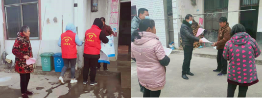 通过沿途发放《2021年春节期间新冠肺炎疫情防疫须知》、张贴温馨提示、悬挂宣传标语等方式提高了村民对疫情防控的意识。志愿者们挨家挨户上门,劝导他们戴口罩、不串门、不聚集、勤洗手,做到“喜事缓办、丧事简办、宴会不办”,号召邻里之间相互转告外省返乡人员“疫情当前不添乱,返乡居家早报告”。