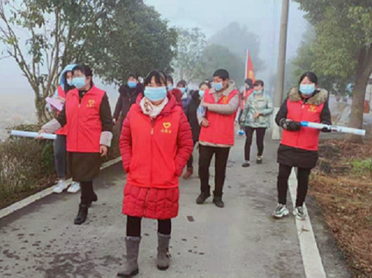 面对严峻的战“疫”形势,志愿者们不惧天气寒冷,为富兴村的乡间小道上增添了一道靓丽色彩。