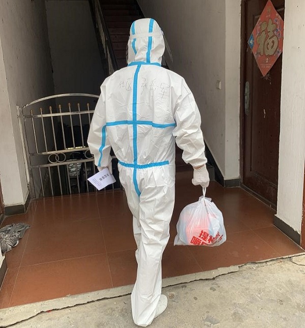 疫情当前显温情,“想为群众做点事”。“我想为社区居民做点小事!”纵使劳累一天,脱下防护服的张岳军依然感到干劲十足。疫情蔓延不仅威胁人民生命和健康,而且影响群众正常生活。如何让居家隔离人员的日常生活少受影响、保障生活必需品供应尤为重要。“不管群众提什么要求,只要我们能做的,就尽力去做,让社区居民感到安心,让居家隔离人员感到温暖。”作为社区的一名党员,张岳军奔波在社区各个角落,与工作人员上门核酸采样、为管控人员发放生活物资、处理居家隔离人员的生活垃圾、逐户上门做好防疫政策宣传……夜以继日、慎终如始,体现了共产党人的责任担当,彰显了共产党员的人民情怀。