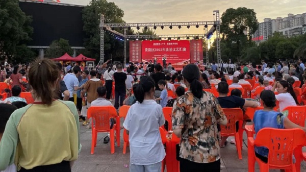 活动形式多种多样,演出内容精彩纷呈,歌唱、小品、花鼓戏、情景剧、快板等多种接地气的节目不断上演,随着演出中有奖竞答环节的开启,更是将活动推向了高潮,“我国的根本大法是什么?”“摇头丸是不是毒品?”等一系列问题,观看演出的群众积极抢答,时不时爆发出阵阵热烈的掌声,让路过的行人都纷纷驻足,极大地活跃了现场的氛围,潜移默化中将法治理念深入群众心中。本次活动,在主场法治文艺汇演外,还设置了普法宣传分会场,同步开展法律援助、法律咨询、禁毒宣传等法律服务活动。