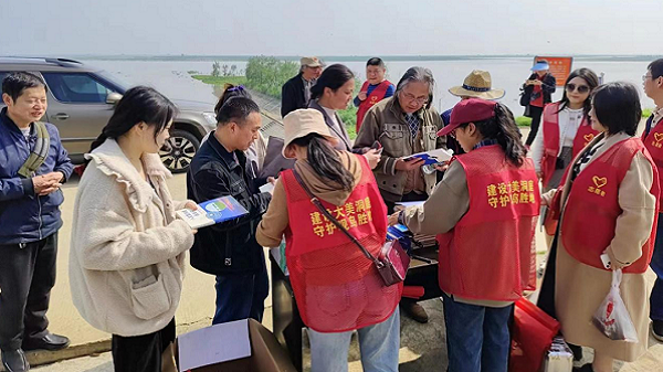今年的4月1日至7日为我省第42个“爱鸟周”,目的是广泛宣传野生动物保护法律法规,增强公众对鸟类等野生动物的保护意识,共同营造人与自然和谐共生的生态环境。启动仪式上,工作人员介绍了“爱鸟周”的由来和南洞庭湖国际重要湿地鸟类资源保护情况,现场发放了洞庭湖湿地科普和越冬水鸟保护宣传资料,呼吁大家共同保护鸟类、保护湿地。此次活动吸引了众多湖区居民前来参加,大家纷纷表示,通过本次活动,深刻认识到湖区越冬水鸟对生态环境的重要性,对南洞庭湿地保护充满了信心和责任感。