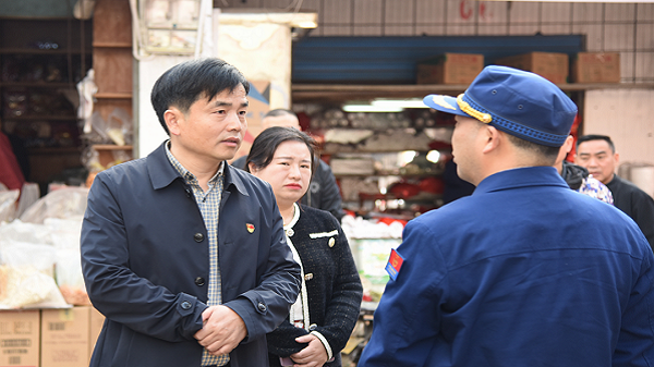 张辉一行现场查看了桥北市场的市场提质改造现状,仔细检查了市场消防安全、值班值守、执法巡逻情况,听取了市场负责人安全工作具体汇报。张辉指出,现在正值节日期间,市场交易和聚集性活动将出现高峰,要强化责任意识,加强隐患排查,确保市场经营秩序稳定,道路交通安全畅通。