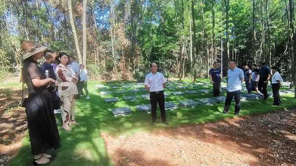 与会人员在长春镇幸福村生态集中安葬点(百合园)现场观摩