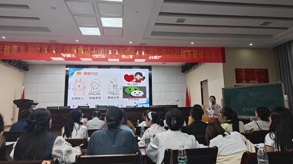下午的活动从科大教育硕士组织的团建活动开始,黎志华教授根据参培教师的需求开展了《学校心理危机干预》主题讲座。区心理健康教育教研员贺玲组织参培教师开展了《积极心理学在教育中的应用》主题沙龙。