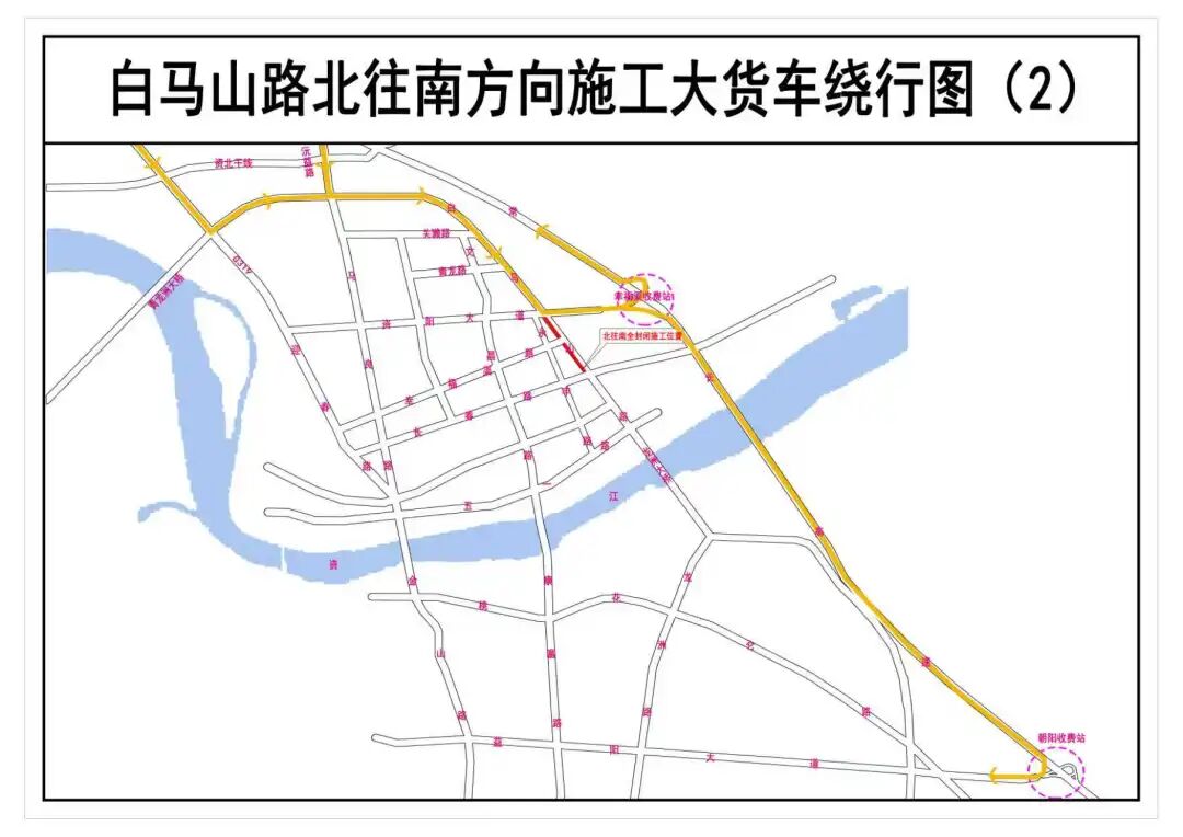 1.经资阳大道或白马山延伸线-青龙洲大桥-虎山路-G536-云雾山路-金山南路-凤溪路-康富南路-关山路绕行。
