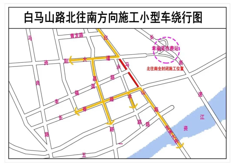 经资阳大道-永丰路或文昌路-长春路-白马山路绕行。