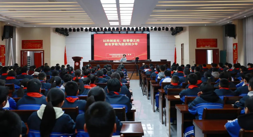 12月16日,资阳区委副书记、区长黄瑛走进益阳市第六中学初中部,以深入学习贯彻党的二十届四中全会精神与《以科创逐光,赴青春之约——做有梦敢为的资阳少年》为主题,为百余名师生带来一场“干货满满”的思政课。副区长刘作恒参加。