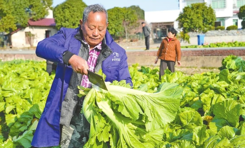富民村村民在地里收芥菜