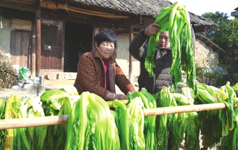 富民村民在晾晒芥菜