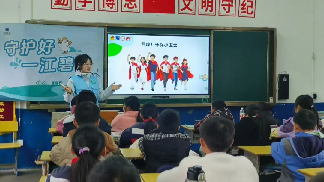 为深入贯彻习近平生态文明思想,扛牢“守护好一江碧水”的政治责任,在资阳区青少年心中厚植绿色发展的种子,近日,资阳区“资此青绿 阳光银城”选调生宣讲团走进茈湖口镇五星小学开展“守护好一江碧水”生态宣讲活动。此次活动以“知识普及+实践体验+情感共鸣”为主线,通过理论讲解、科学实验、歌曲合唱等形式,为孩子们带来了一堂生动有趣的互动式环保课堂。