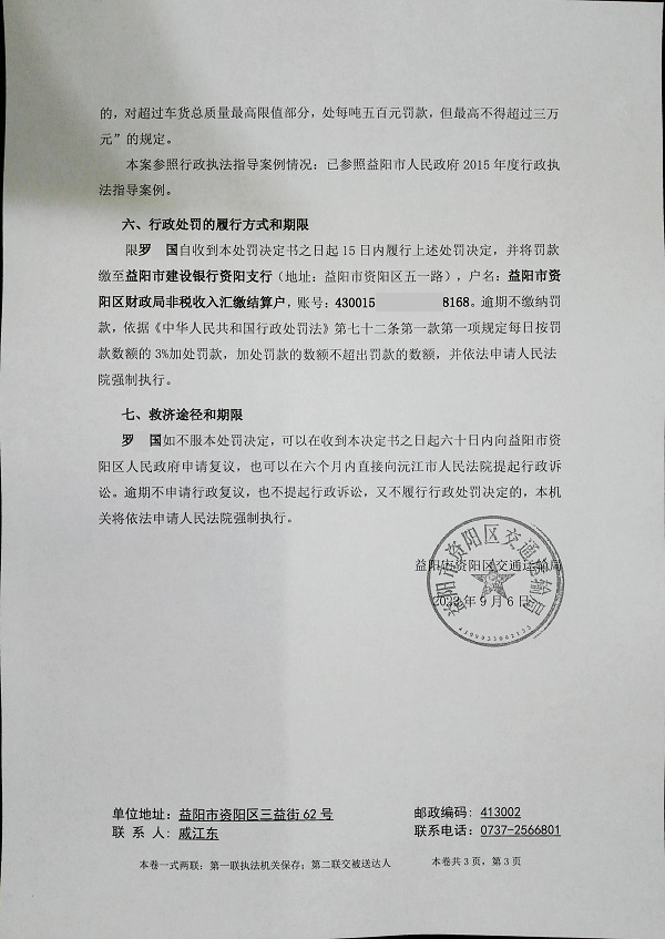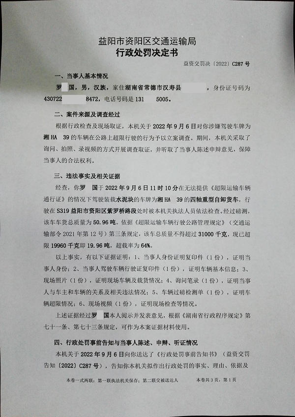 益阳市资阳区交通运输局行政处罚决定书 益资交罚决〔2022〕C287号
