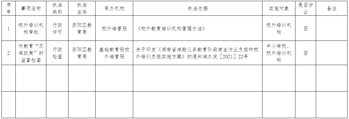 资阳区教育局行政执法事项清单