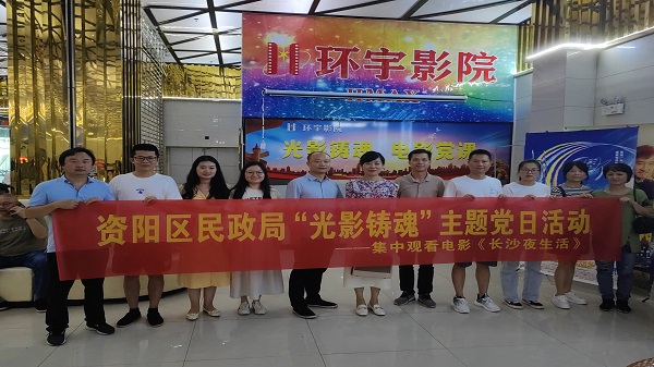为贯彻落实党的二十大精神和习近平总书记关于文艺工作的重要论述,引导全体干部职工增强热爱湖南、建设家乡的自觉性和自豪感,近日,资阳区民政局开展“光影铸魂”主题党日活动,组织干部职工集中观看电影《长沙夜生活》。