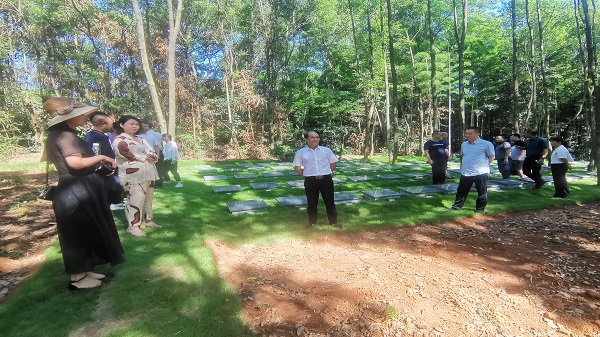 与会人员到长春镇幸福村生态集中安葬点(百合园)现场观摩