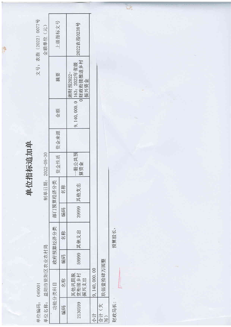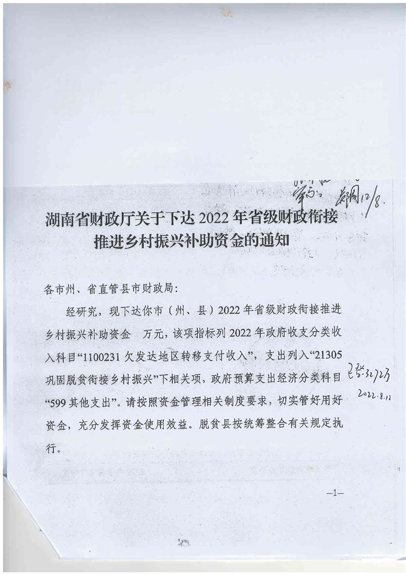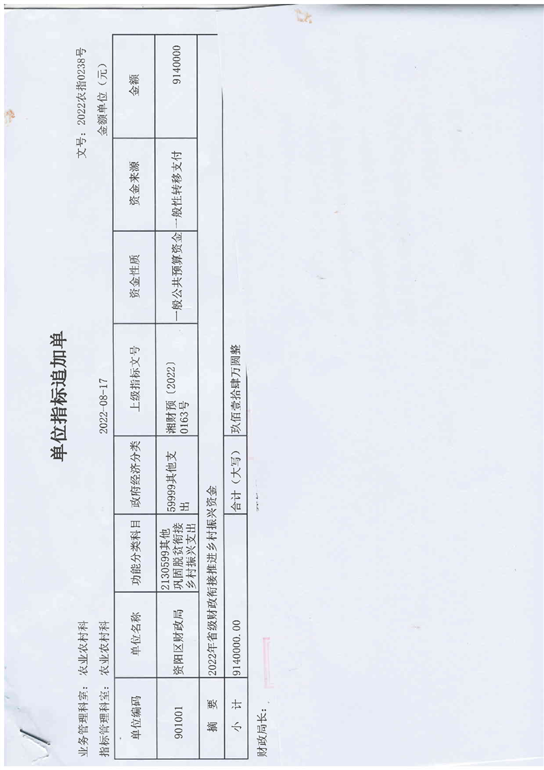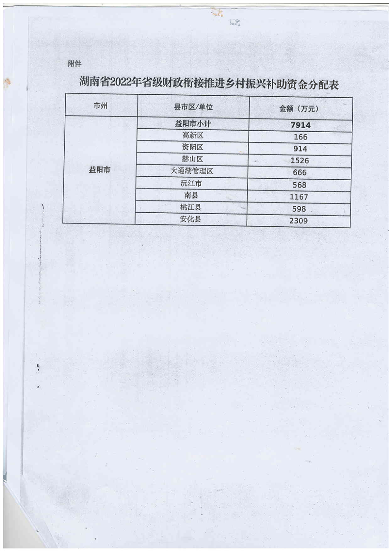 2022年省级财政衔接推进乡村振兴补助资金的通知(资阳区拨付公示)