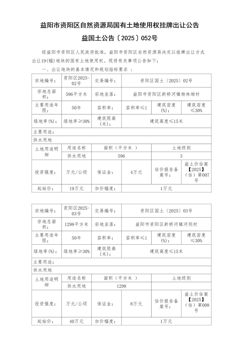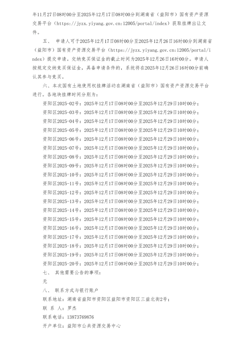 益阳市资阳区自然资源局国有土地使用权挂牌出让公告