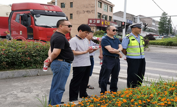 在G319与S319交汇路口,邓勇发现路旁设置的景观绿化带路沿石有重车压碾痕迹,通过实地观察,发现该交叉路口交汇点较窄,大车通行时转弯半径不够,导致车辆转弯时后轮在花台边缘压过,存在安全隐患,现场对公路建设养护中心提出意见,要求马上进行整改,为车辆提供良好的通行条件。在沙头镇中心小学旁五岔路口,踏勘完整改现场后,他要求整改承建单位在保证建设质量的同时,加快施工进度,确保在端午节前全面完成建设,让红绿灯投入使用,提高安全行车效率,实现整改目的。