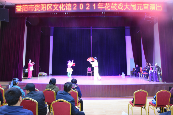 2月25日,中国传统节日元宵佳节前夕,在资阳区文旅广体局指导下,资阳区文化馆、艳阳老中青联合戏乐会在区文化馆剧场举办2021年花鼓戏大闹元宵演出。