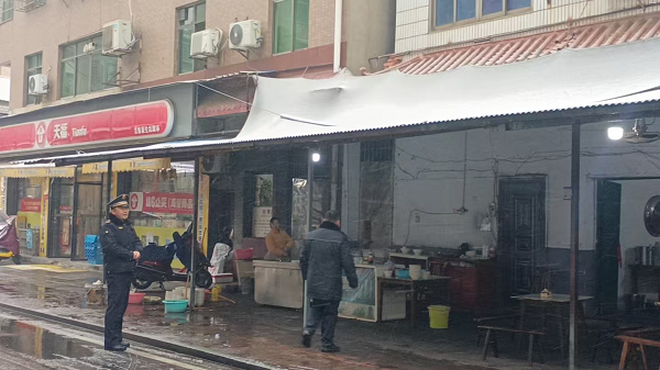 区城管局组织城管资阳大队加强城区幸福渠西路、致富南路、人民街等路段的20多家沿街商户、户外广告招牌进行巡查提醒,及时排查棚顶积雪等安全隐患;对青龙洲公园树立警示牌,拉警示线,对积雪严重的树木进行人工清雪,防止树枝被压断或结冰等情况;环卫中心人员整装待发及时赶往作业现场,对桥梁、主次干道等开展清雪除冰作业,保障道路畅通。全局上下严阵以待,严格执行应急值守,确保随时响应、及时处置,用责任与担当为市民筑起温暖安全防线。
