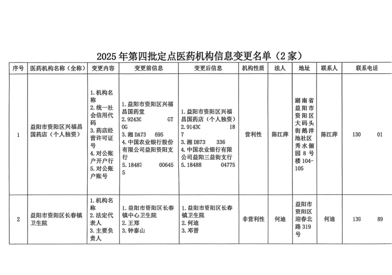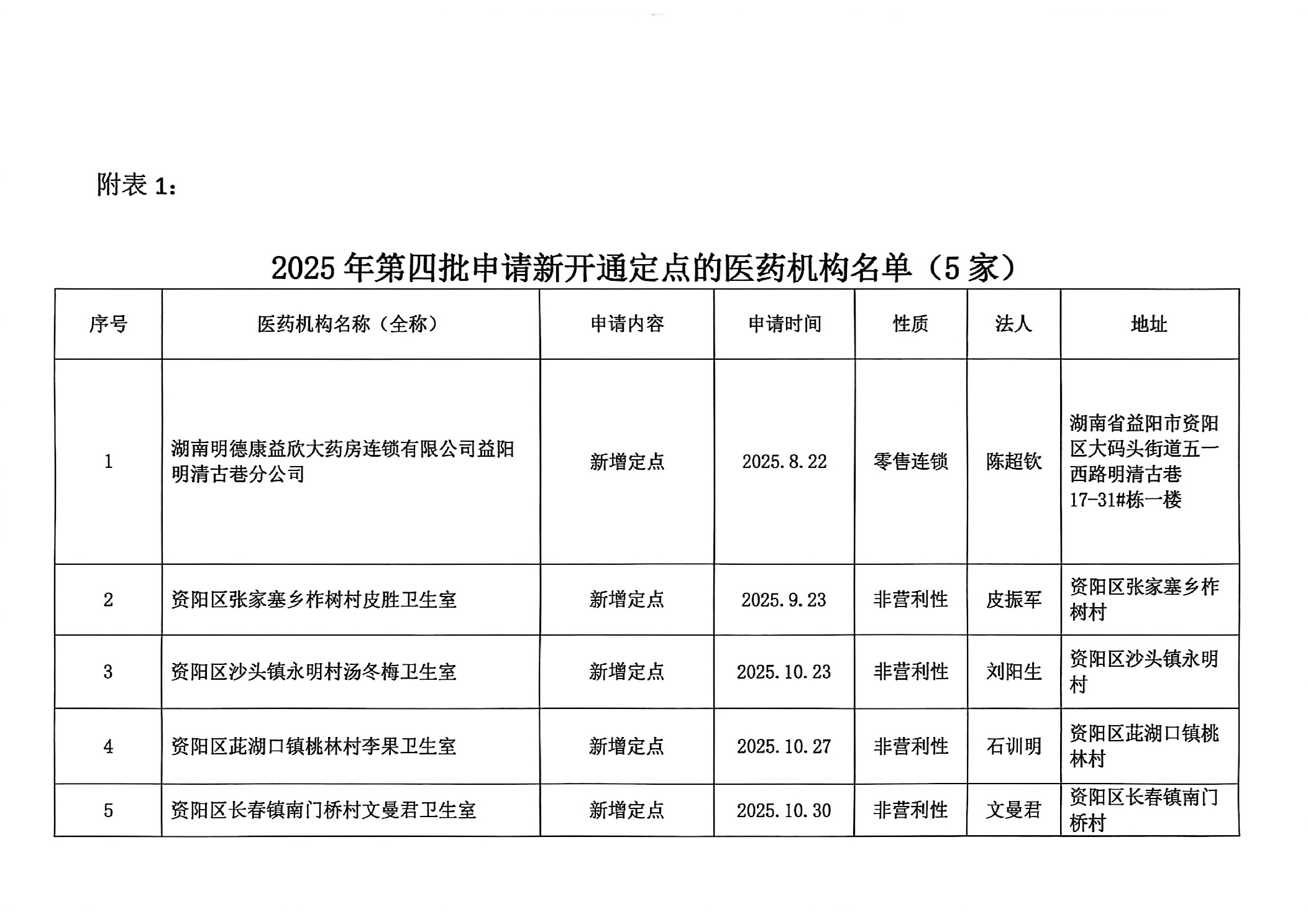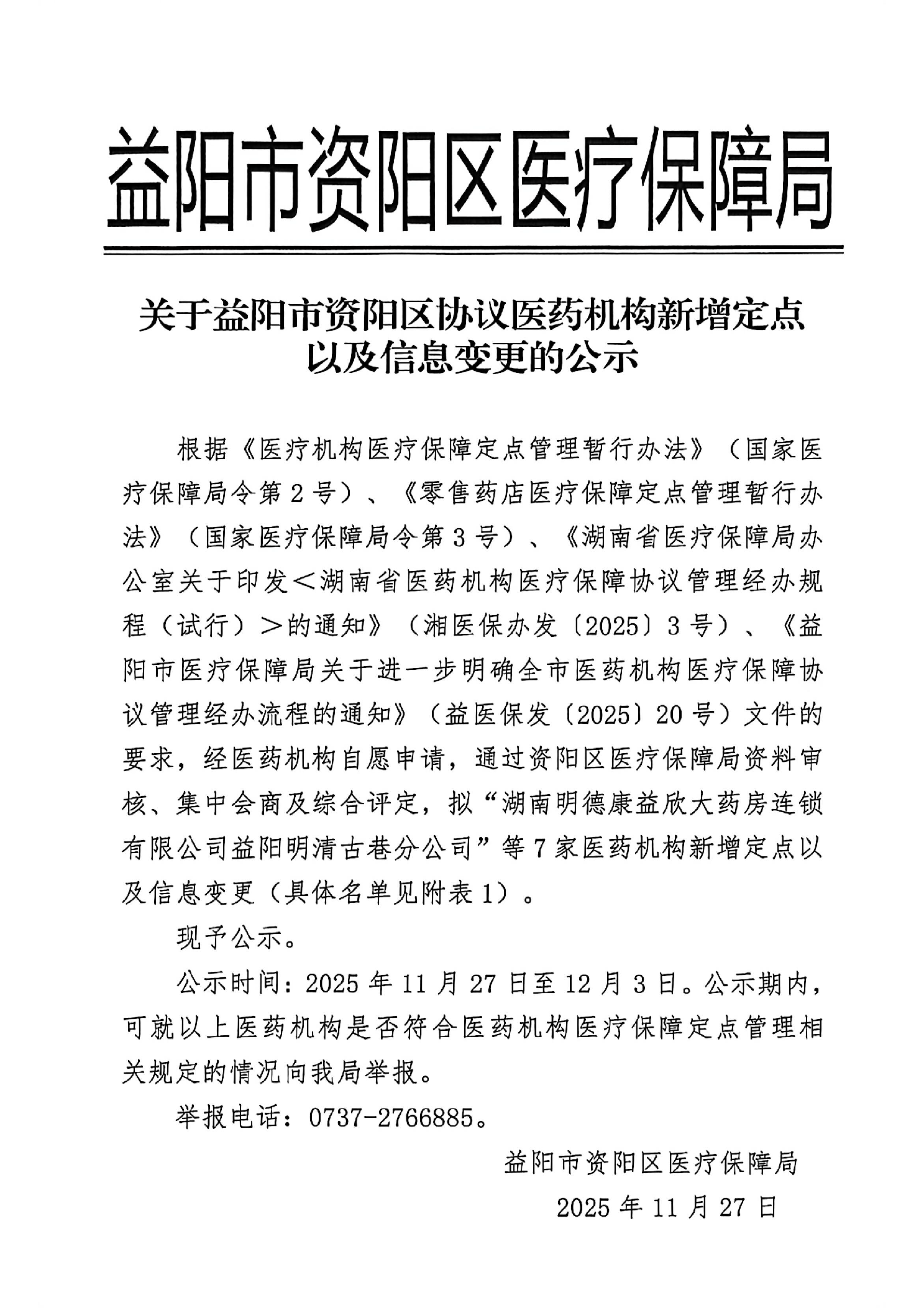 关于益阳市资阳区协议医药机构新增定点以及信息变更的公示