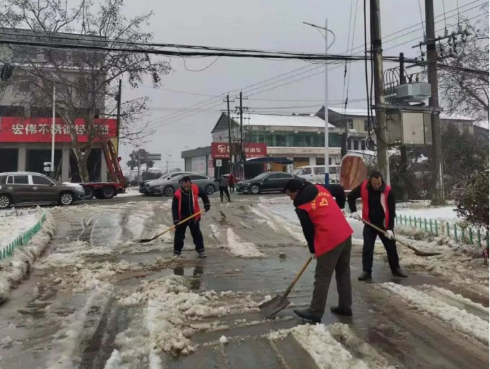 组长“清障”惠民生。在本次雪凝天气进展过程中,迎风桥镇社会治安和应急管理办公室联合镇交管站、派出所等部门工作人员,对镇主干道尤其是319国道,路面凝冻情况进行全面巡查,在覆雪结冰路段开展撒盐、铲冰、除雪等工作,引导过往驾驶员减速慢行、安全驾驶。迎风桥镇邹家桥村组长曾才贵在得知道路结冰受阻后,不畏严寒,志愿加入邹家桥村村主干道撒盐除冰工作,为保障道路通畅贡献力量。
