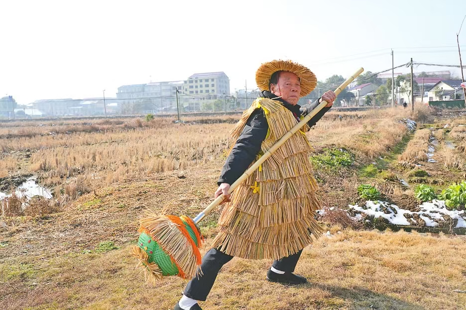 天作幕布,地为舞台。老人步伐腾挪,身手飒沓如风。一招一式间,身披的草衣仿佛化为了鳞甲,和坚毅的眼神一齐闪着光。