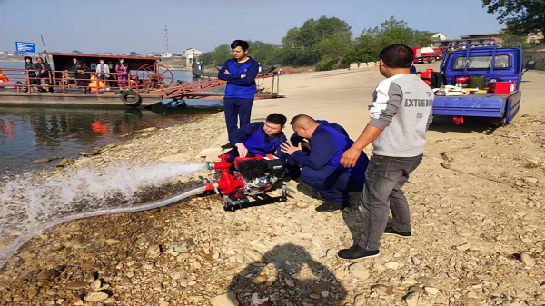 来自新桥河镇人民政府的40名应急救援队员在完成集结后,由相关负责人进行了串联水泵打水演示的操作,并向各参演人员强调了操作技巧和要领。