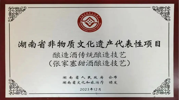 2023年12月,张家塞甜酒酿造技艺被列为湖南省非物质文化遗产代表性项目。