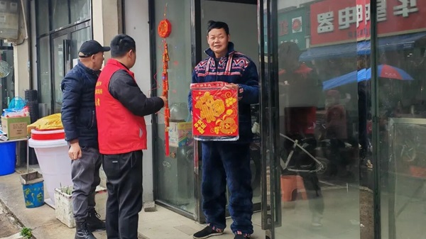 年味渐浓,连日来,资阳区张家塞乡的志愿者们身着红马甲,走街串巷开展“敲门行动”,将大红福字、春联和电子鞭炮送到居民家中,也将禁燃禁放的文明新风一并带上门。