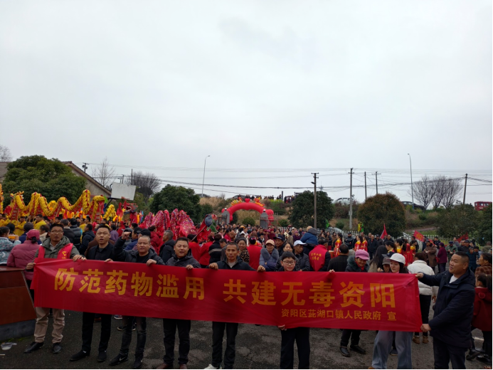 正月十五花灯艳,民俗欢腾话平安。3月3日,益阳市资阳区茈湖口镇举办“元宵节与禁毒同行”主题活动,以舞龙、猜灯谜、花鼓戏、打鼓等民俗形式,将“防范药物滥用,共建无毒资阳”的理念传递给每一位村民,将禁毒宣传融入传统元宵佳节,筑牢农村防毒拒毒防线。