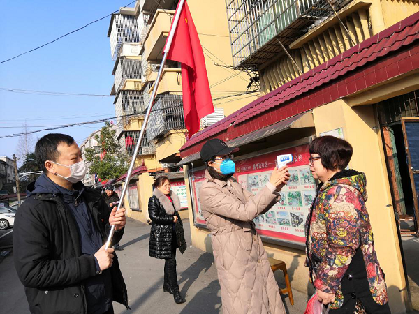亮身份,作表率。街道在每个辖区关键点位竖立一面党旗,让党旗在疫情防控一线高高飘扬,鼓励下辖党组织和广大党员发挥战斗堡垒作用和先锋模范作用,深入一线,组成专兼职结合的工作队伍,形成“街道本级、社区、网格”三级防控,实施地毯式管理,对社区、楼栋、家庭进行全覆盖,开展对返乡人员情况进行全面排查。