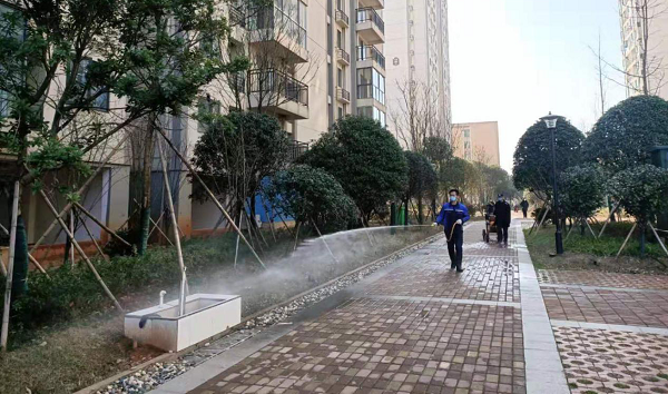对社区小区环境卫生动员玉马庄小区物业对小区内进行全面消毒消杀,覆盖出入门禁、康体设施、楼栋大堂、车库、电梯厅、垃圾中转站、下水道等关键区位,由物业统一进行集中消毒消杀,同时进行消毒台账登记。小区已设置废弃口罩专用垃圾桶,对回收的废弃口罩进行集中销毁处理,避免引起疫情蔓延。