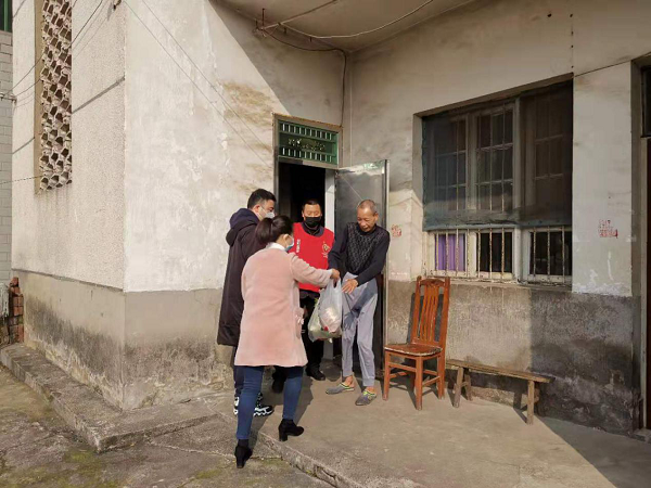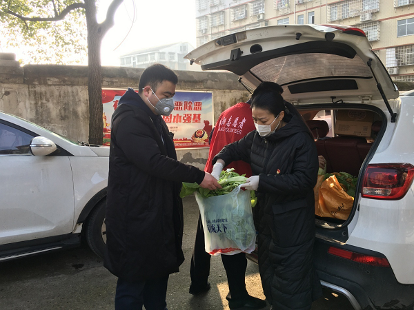 社区中心支部书记陈菊仙带队为辖区内的困难人员和居家隔离人员等精心挑选新鲜的蔬菜和物资,分类装袋后,立即送往辖区的隔离人员和困难群众家中。上午10时,他们来到了辖区内一位困难群众曹大哥的家中,曹大哥是一位小儿麻痹症患者,常年无法进行体力劳动,“我出去买东西不便,一个电话打到社区,社区就给送来了。” 曹大哥拎着手中的物资,高兴地说到。11时,他们来到辖区某小区,将白菜、萝卜、面条等生活物资送到了一个住户门口,该户女儿已被确诊,经初步检查,她自己暂时无发热、咳嗽、胸闷、气急等症状,但依然严格进行居家隔离。“如果还缺其他生活用品,您就打电话或者发微信,我们帮您买。”陈菊仙热心地说到。