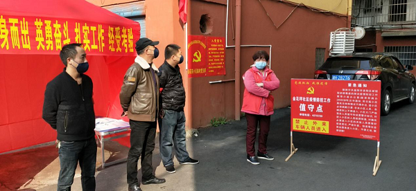 在金花苑小区值守点上,小区居民每天都能看到资阳区城市建设投资开发有限公司的志愿者们佩戴着口罩坚守在居民小区抗疫一线,对过往的行人、车辆认真登记。