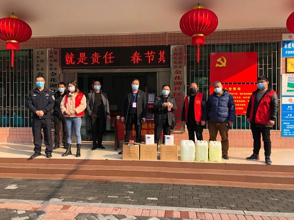 2月22日,区委宣传部部长易伟带队到金花湖社区,看望慰问奋战在疫情防控一线的社区工作人员,并为他们送去了200个口罩、消毒液、免洗手液和体温枪等物资,解决了社区的燃眉之急。