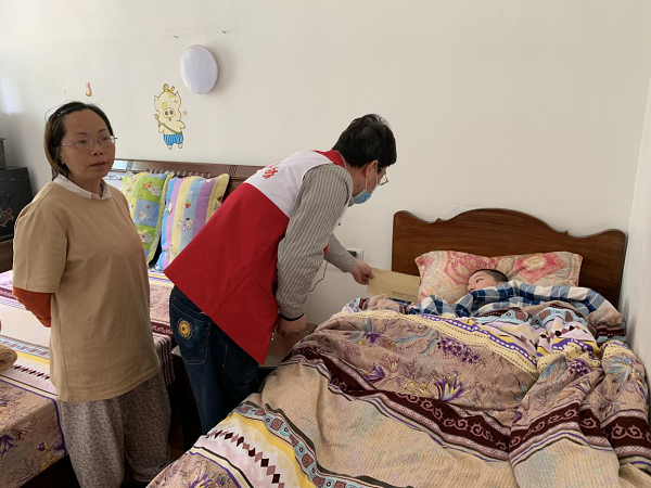 困难学生李娜,父亲过逝,伴外公外婆住,有一个25岁的从小就是脑瘫的姐姐,由姨妈等人照顾。她姨妈说:“每年社区都会上门组织慰问,我的心里真的非常感动。有你们的帮助,真是太感谢了。”