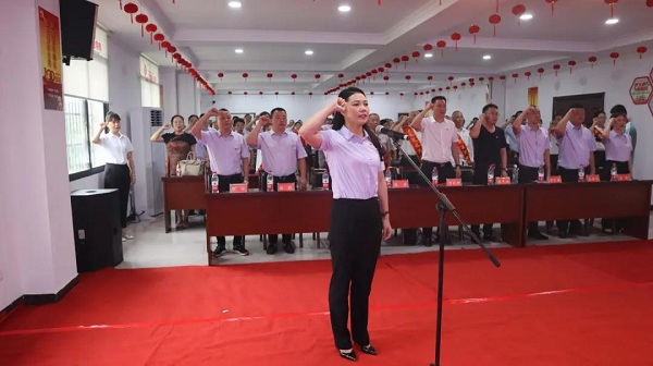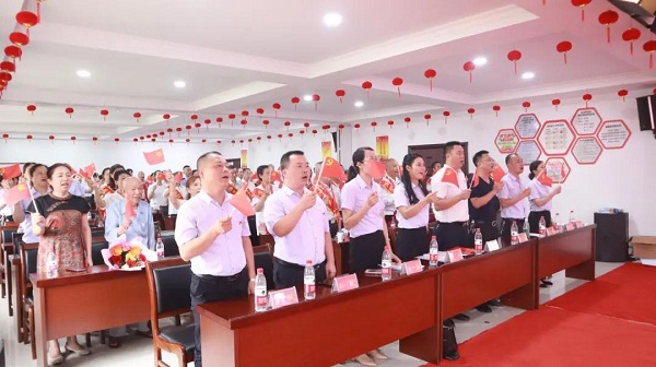 街道党工委书记陈丹带领全体党员干部重温入党誓词,一句句铿锵有力的入党誓词,表达了全体党员对党和人民的无限忠诚,抒发了与党同呼吸共命运的浓浓情怀,坚定了不变的初心与使命。
