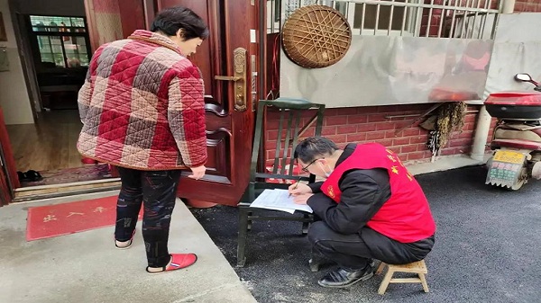 “您好,我是社区志愿者,请问您家有从益阳市外、省外、境外返回资阳的人员吗?”“请问您接种了新冠疫苗加强针吗?”“请问您购买了居民医保吗?”一声声提醒询问的话语反复回荡在大码头街道新兴街社区辖区的居民楼道里。