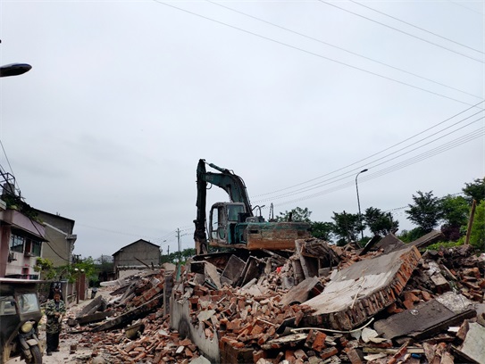4月23日,汽车路街道联合区法院、区城管执法局、汽车路派出所、汽车路司法所,在永丰社区居民代表、街道人大代表共同见证下,对永丰社区资江风貌带下3栋征迁房予以腾空拆除。