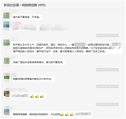 疫情防控,关键在基层。自新一轮疫情防控工作以来,长春经开区利用社区网格群织密疫情防控网,把力量沉下去,园区班子成员、党员干部进网格群发布疫情防控要求、疫苗接种信息等一手消息,并阻断疫情谣言传播途径,用大家的“辛苦指数”换来辖区的“安全指数”,受到辖区群众的一致好评。