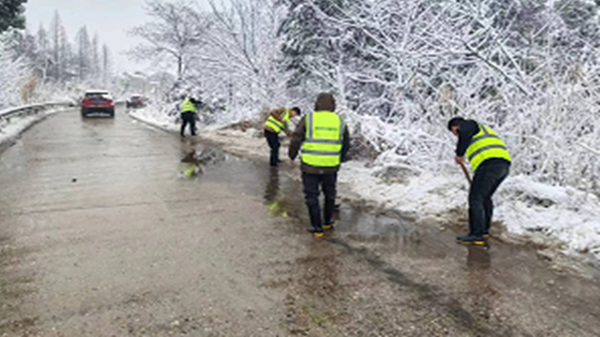 除雪铲冰过程中,大家齐心协力拿起铁锹、大扫帚等工具,热火朝天地扫雪除冰。还出动车辆在辖区主次干道上撒盐化雪,安排志愿者在高速路口协助指挥交通,确保辖区道路畅通,以防意外事故的发生。