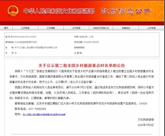 据悉,全国乡村旅游重点村是文化和旅游部、国家发展改革委两部委为贯彻落实《“十三五”旅游业发展规划》《国务院关于促进乡村产业振兴的指导意见》而推出的一项重要举措,入选的乡村将在项目资金、品牌创建、人才培养、宣传推广等方面优先享受国家有关支持政策。