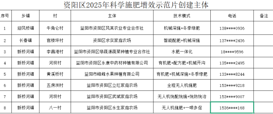 根据省、市、区,关于科学施肥增效的相关文件精神,结合8月份在资阳区政务网上发布的科学施肥增效示范片创建公示,现将资阳区2025年科学施肥增效示范片创建主体情况向社会予以公示: