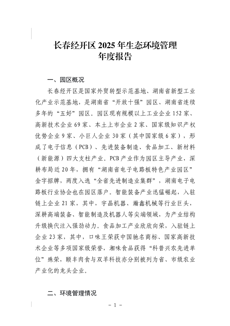 长春经开区2025年生态环境管理年度报告