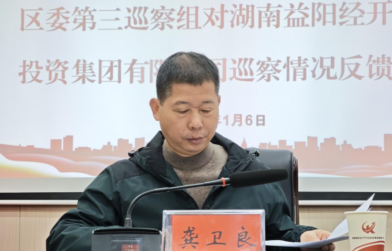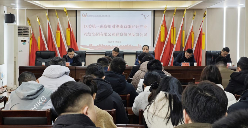 根据区委巡察工作领导小组的部署,2026年1月6日,区委第三巡察组向经开产投集团反馈巡察情况。区委第三巡察组组长江日明、副组长郑钧水向经开产投集团总经理郭兴洲反馈了巡察情况。之后,江日明代表区委巡察组向经开产投集团领导班子进行了反馈,区纪委常委、区委巡察办主任龚卫良传达了区委书记付振南关于巡察工作的讲话精神,并对巡察整改工作提出要求。郭兴洲主持会议并作表态发言。区委常委、区人民政府常务副区长、长春经开区党工委书记李谋出席会议并作重要讲话。