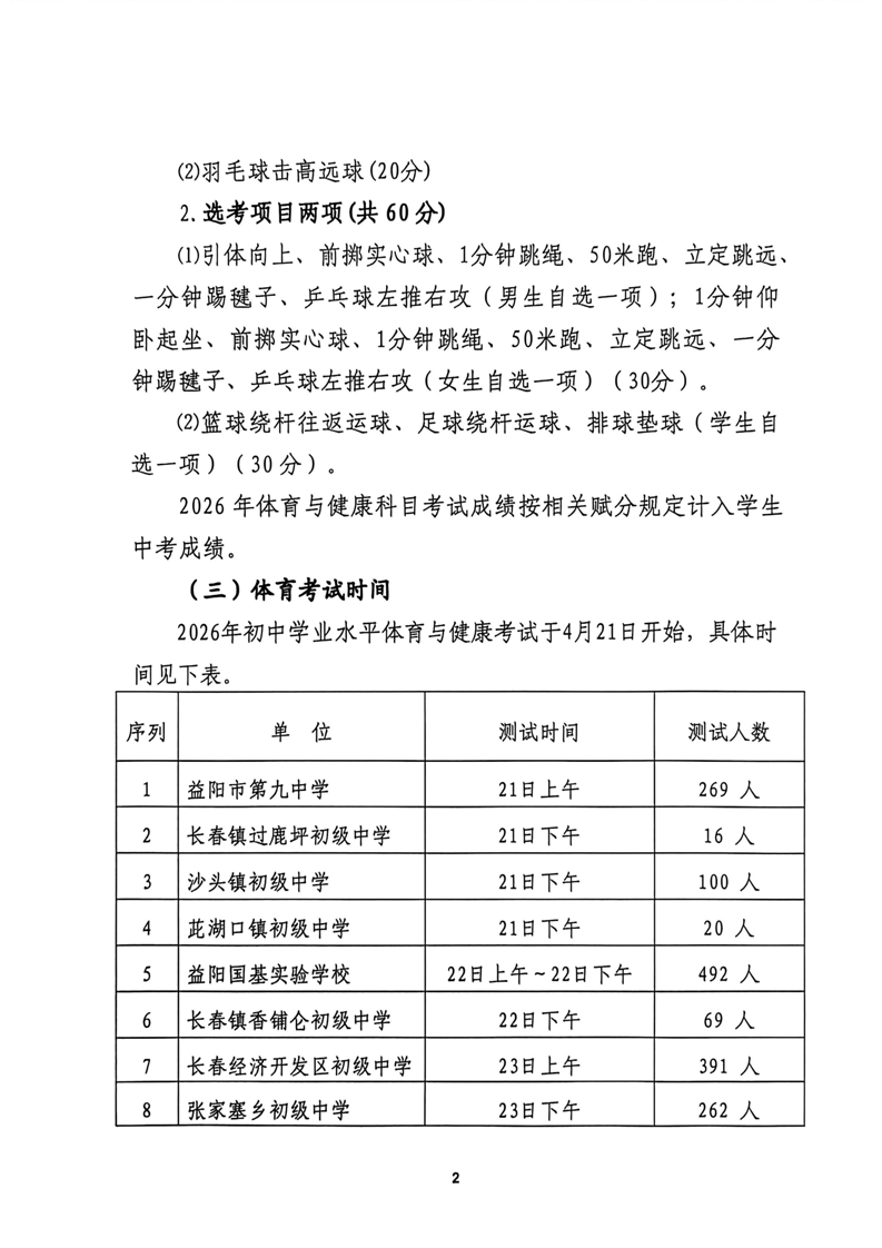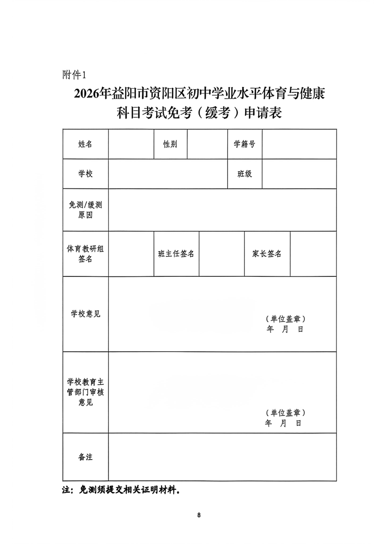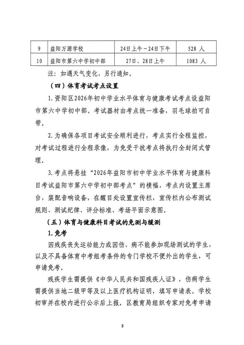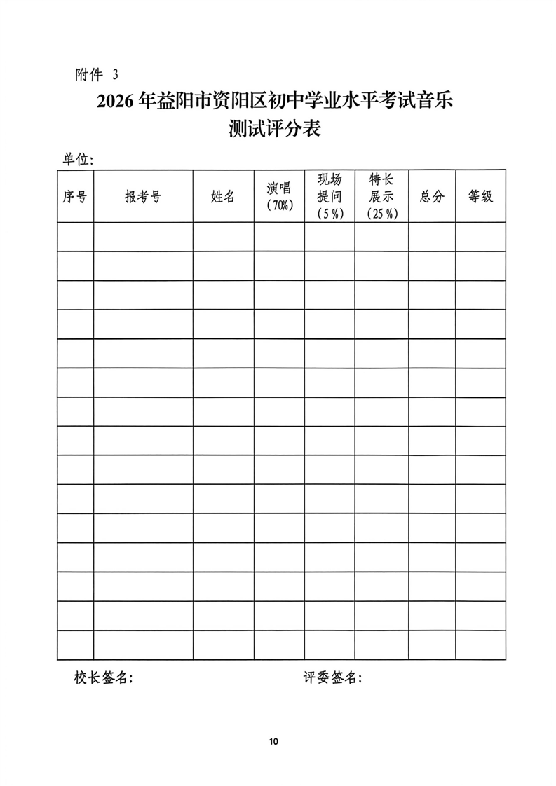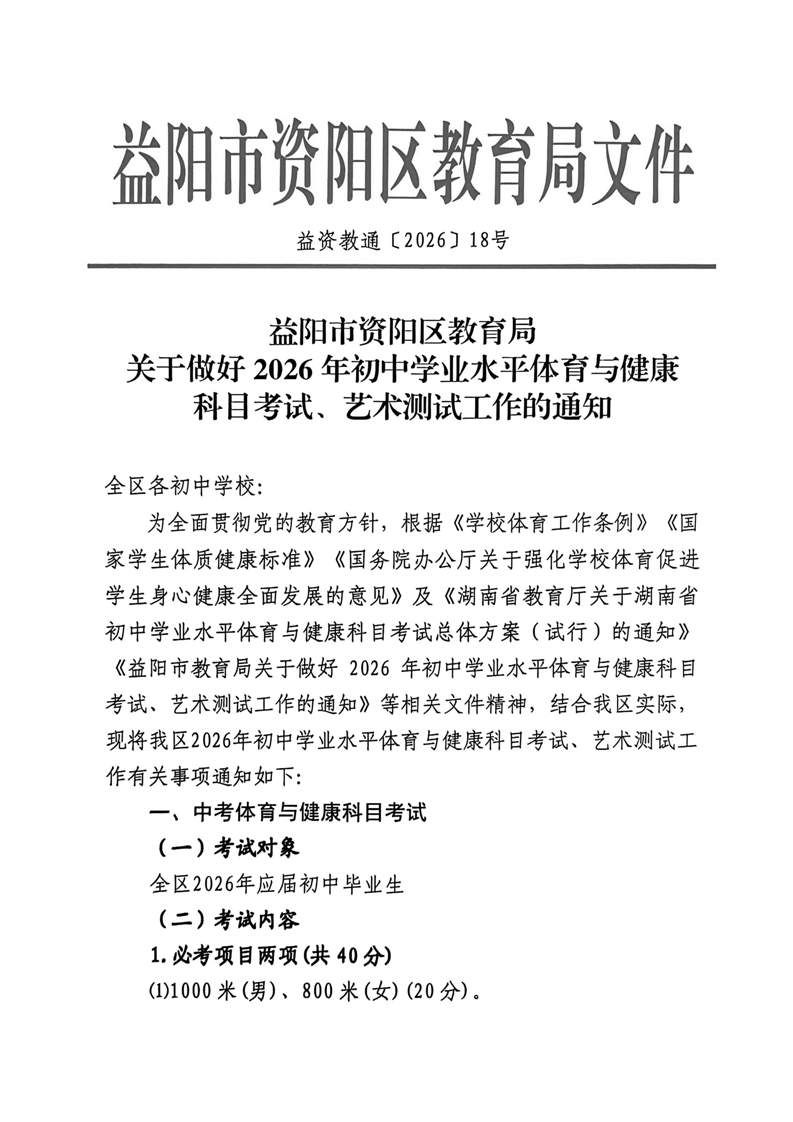 益阳市资阳区教育局关于做好2026年初中学业水平体育与健康科目考试、艺术测试工作的通知