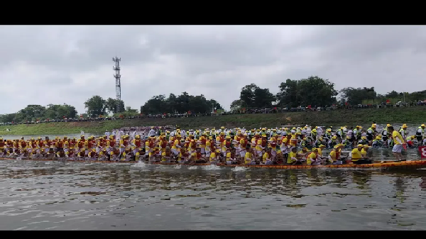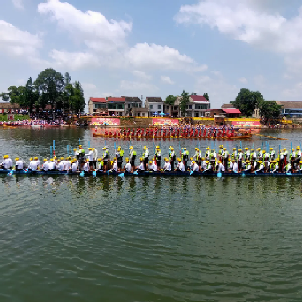 活动现场,龙舟如蛟龙出海,在湖面上劈波斩浪。鼓手有节奏地敲击着鼓点,手中的船桨整齐划一地落下、划动,溅起层层水花。岸边观众的呐喊声、助威声此起彼伏,场面十分壮观。