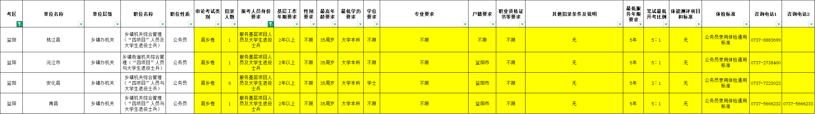 关于您提及的沅江市、桃江县等区县2025年公务员招录设置专项岗位的情况,事实上,我区在2025年公务员招录工作中,也同步面向退役大学生士兵设置专项招录岗位,并成功招录1名退役大学生士兵,切实将吸纳优秀群体服务基层的工作落到实处。关于“四项目”人员定向招录岗位,由于目前我区该类人员数量较少(如“大学生村官”“西部计划”“特岗教师”等均未覆盖或人员有限),难以形成有效竞争,因此暂未设置相关岗位。